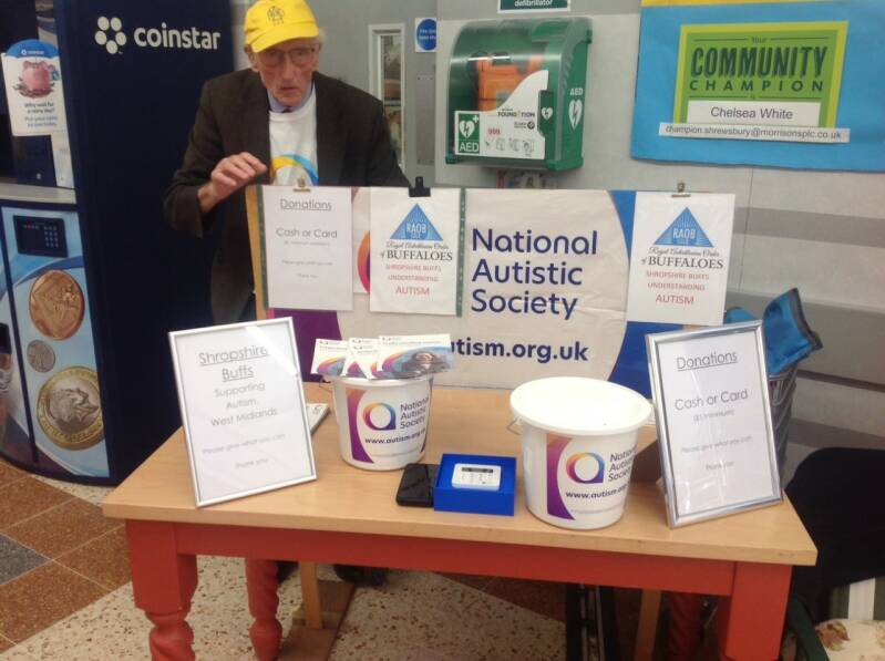The Buffs are a charitable organisation who meet for mutual social enjoyment and aim to reduce social isolation. They support good causes in their local community by raising funds and help to improve the lives of people in need Eric Jones, aged 96 of the Buffs has been very active in the community during the past year with the support of volunteers from the Buffs. Activities have included supermarket collections at Morrison’s inShrewsbury &Oswestry whilst also being active further afield at theShopping Centre in Church Stoke. Eric says, “We have enjoyed the fundraising activities very much and I’ve been very keen to help thesight-loss community. I understand the impact sight-loss has on someof my fellow members and we wanted to do our best to help them.”Lindsey Rowlands, local guide dog owner and volunteer fundraiser said,